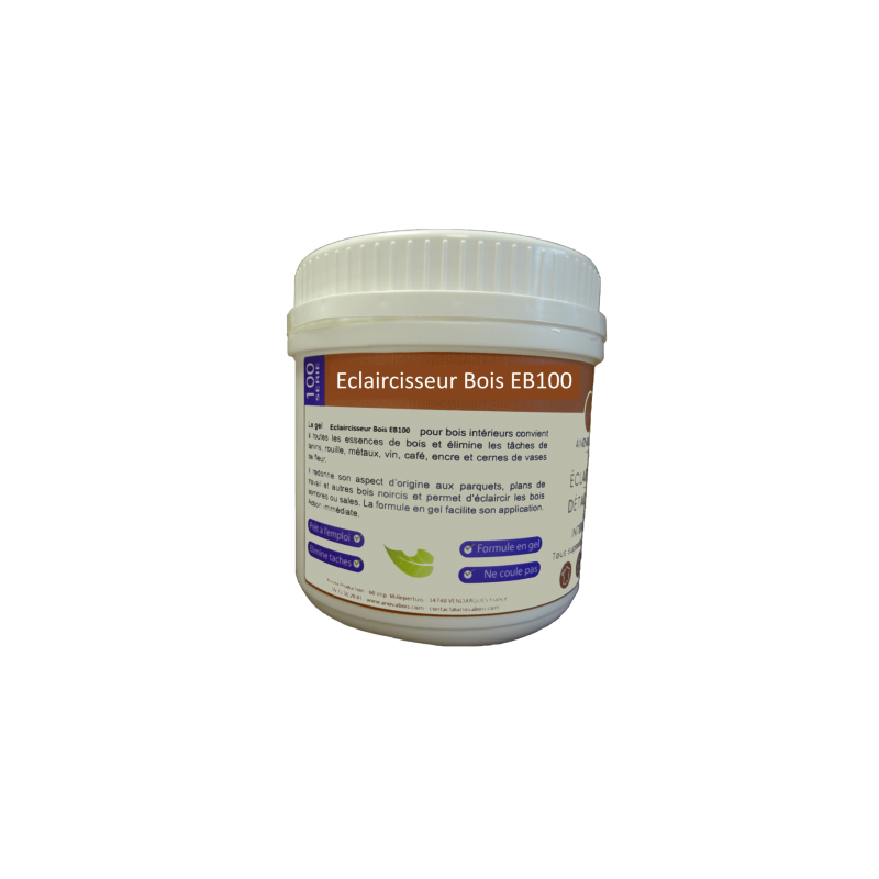 Idéal pour éclaircir, blanchir, détacher ou raviver vos meubles en bois. Il convient à toutes les essences de bois comme le chêne foncé et élimine les taches de tanins, rouille, métaux, vin, café, encre et cernes de vases de fleur. Il permet d'éclaircir les bois sombres, sales ou ternis par le temps. Ce produit redonne son aspect d’origine aux parquets, plans de travail, meubles et autres bois d'intérieur. Économique et performante, sa formule en gel permet une action prolongée et évite l'évaporation rapide du produit. Formulé en phase aqueuse, inodore et sans COV, il s'adapte parfaitement à une utilisation en intérieur. Convient également pour le mobilier de jardin et les servantes extérieures.